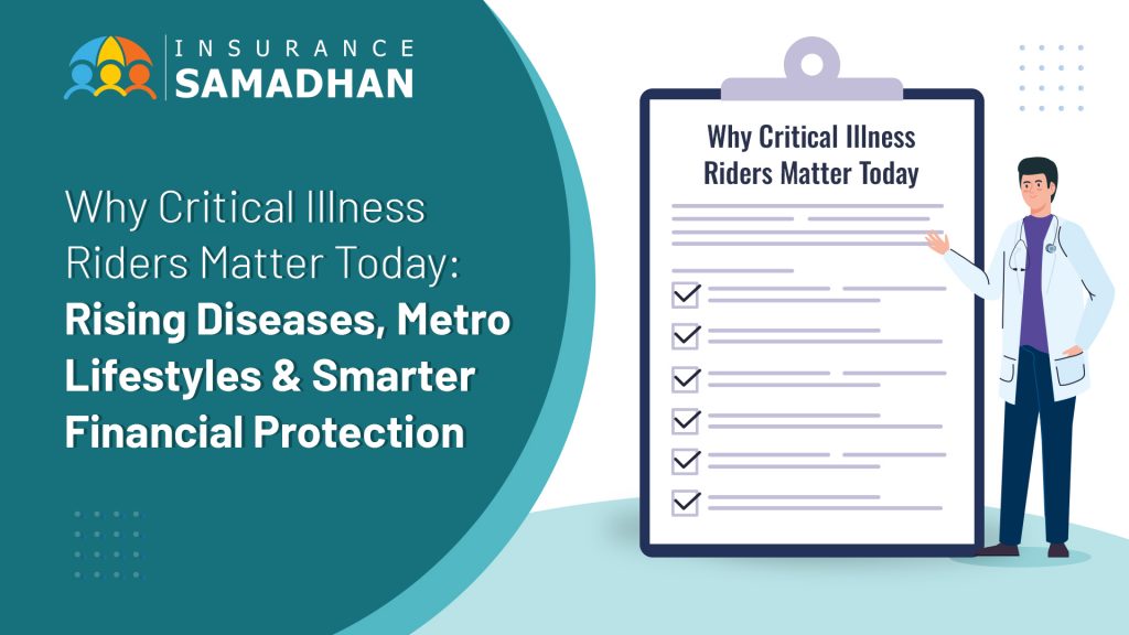 Critical illness riders are essential today due to rising cancer and lifestyle diseases. Learn how they work, why metros & young professionals prefer them, and how Insurance Samadhan helps.